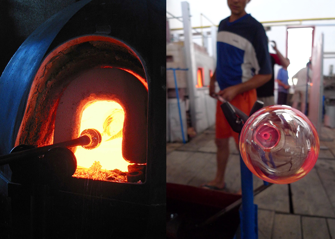 pendant made from colored, hot blown glass